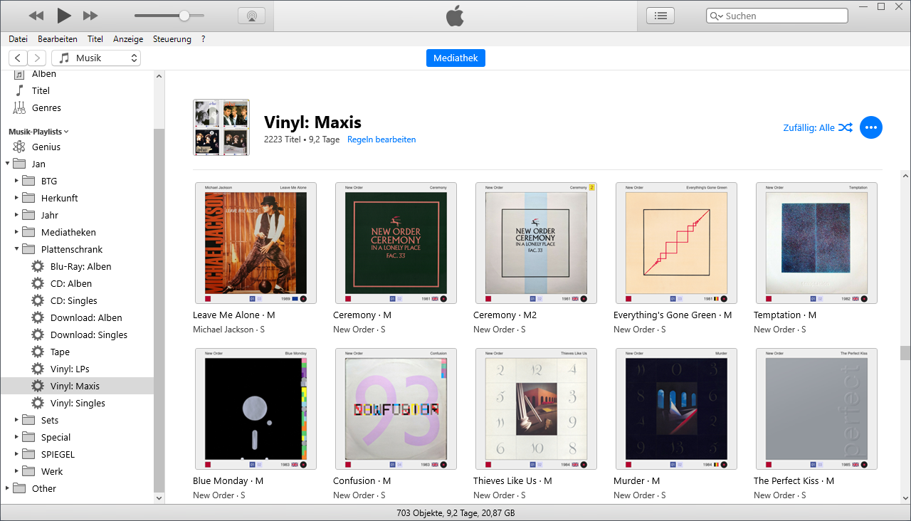 Nun ist es bei mir nicht so, dass ich Musik nur zufällig höre und irgendwie in irgendwelchen Datentöpfen ablege, sondern ich bilde virtuell eine reale Sammlung nach. Real ist für mich ein (meistens) physisches Medium, auf dem die Musik eines Künstlers erschienen ist. Das kann bei neuerer Musik auch ein Download sein, aber sicher keine nachträglich vom Plattenlabel zusammengewurstelte Hitsammlung, sondern eine exakte Abbildung eines irgendwann auf einem bestimmten Markt erschienen Datenträgers.