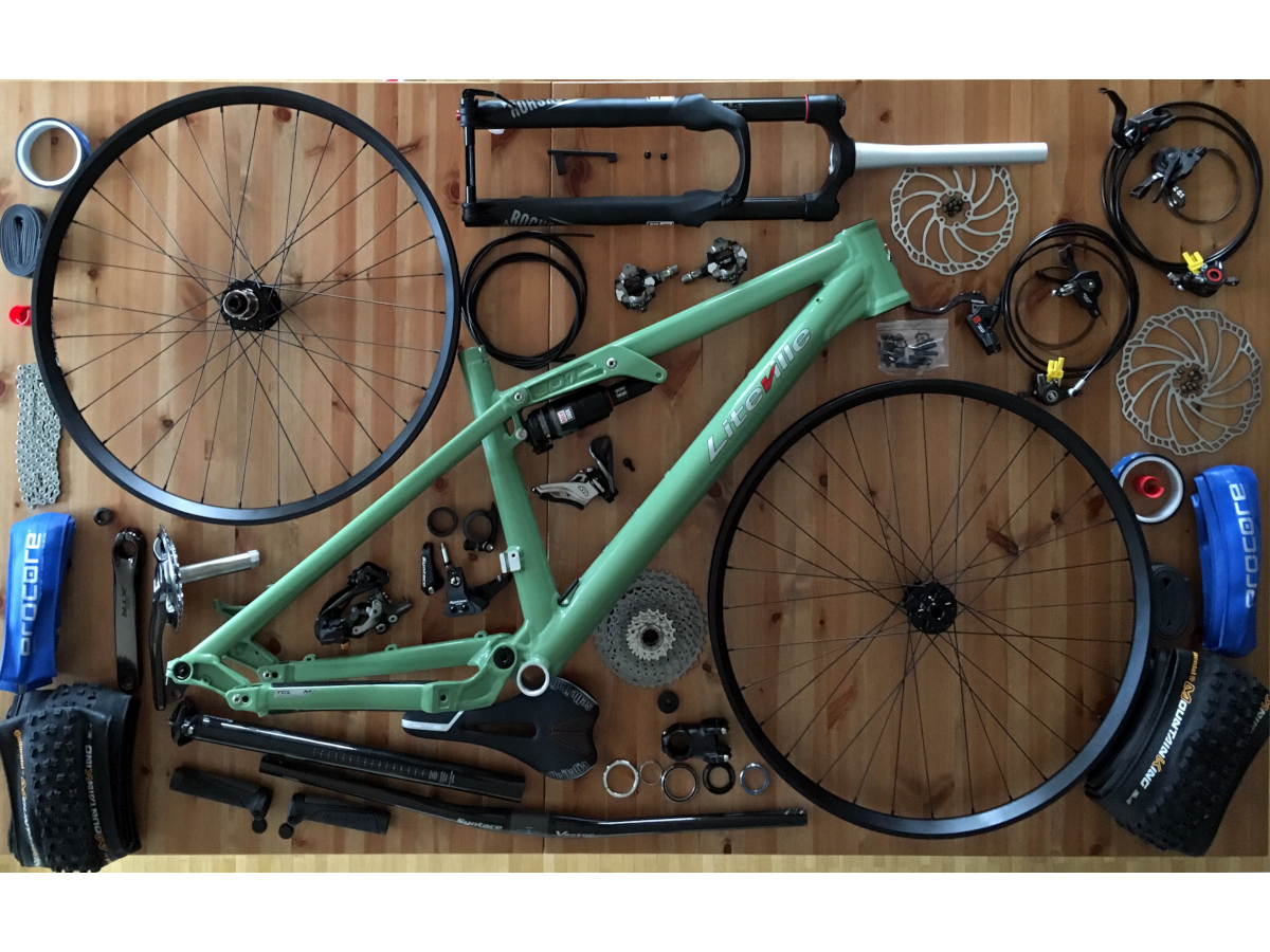 Am Anfang der Überlegung für ein Fully stand natürlich ein Rahmen. Ein hochwertiger Trail-Rahmen mit ungefähr 140 mm Federweg sollte es sein. Da ich schon seit Jahrzehnten Syntace-Fan bin, war die Wahl naheliegend: Liteville 301.