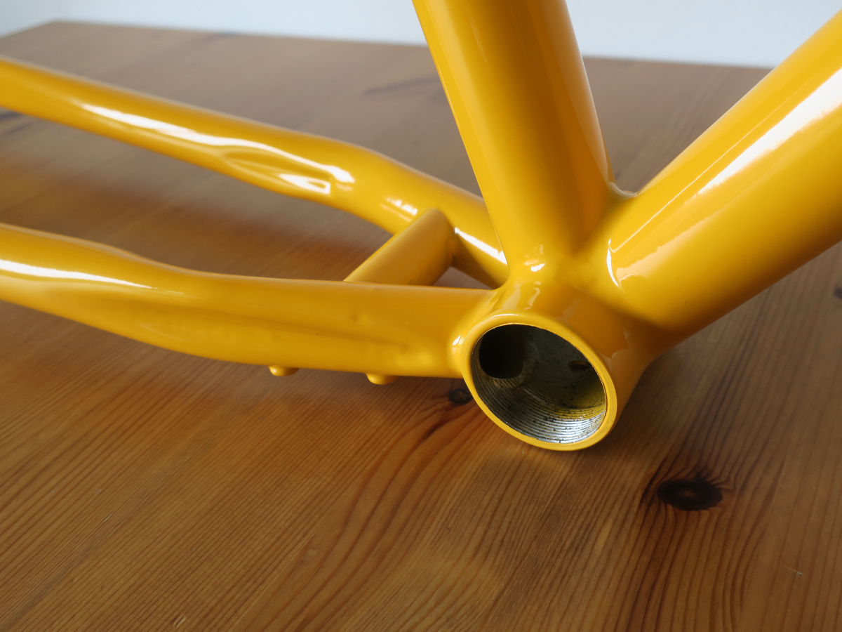 Tja, Pech gehabt. Nach dem Entlacken konnte man die Misere bestaunen. Nöll hat mir jedenfalls ein neues Oberrohr eingezogen und neues Pulver aufgebracht. Jetzt dauert es hoffentlich wieder mindestens 14 Jahre, bis etwas kaputt geht.
