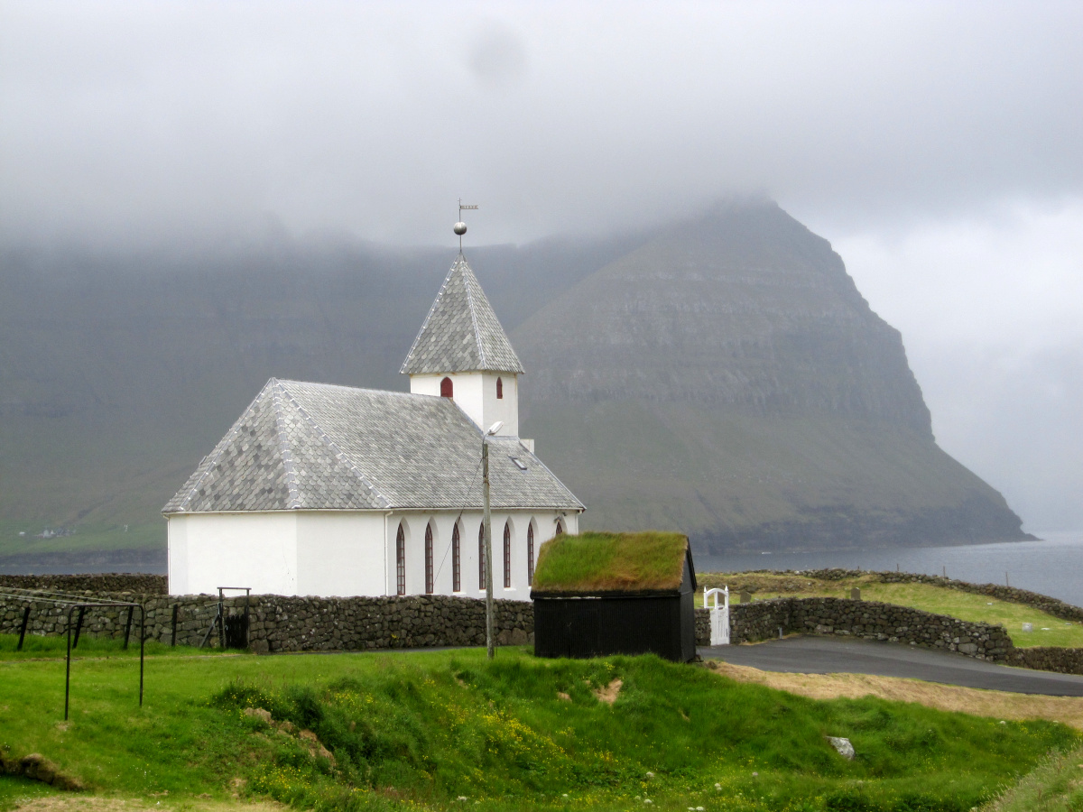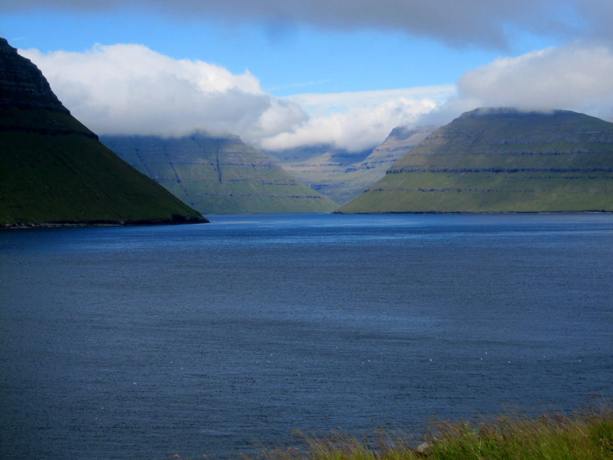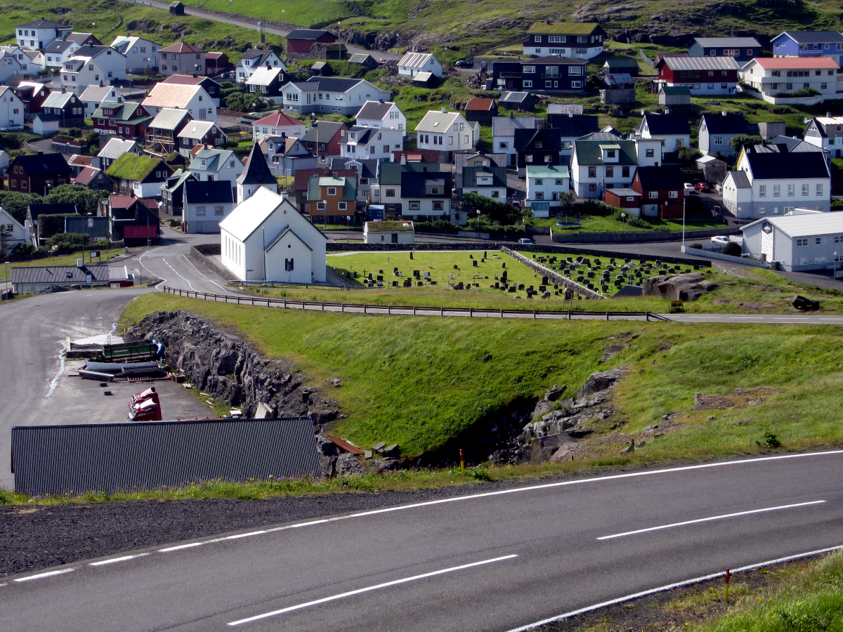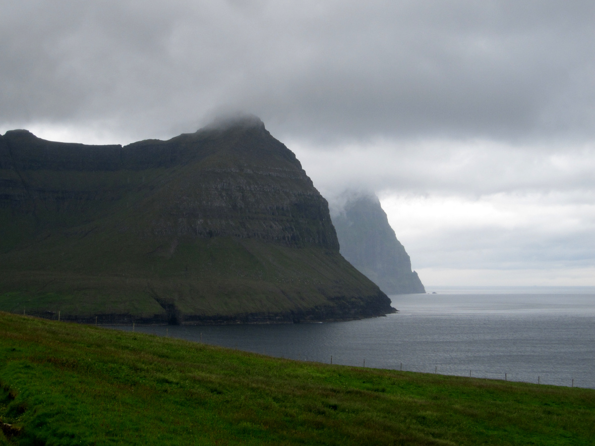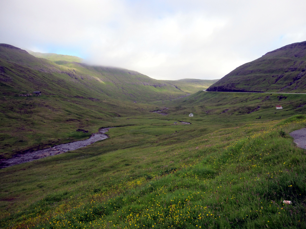 Für die Fahrt nach Tórshavn nehme ich aus Zeit- und Motivationsmangel den Bus. Dort ist das Wetter wieder richtig schön. Am nächsten Tag soll es jedoch schon wieder regnen, und so werde ich wohl auf den Reiseführer hören, der von einer Fahrt über die alte Bergstraße in Richtung Vestmanna bei Wolken abrät. Da ich sie trotzdem gern fahren will, beschließe ich, heute von Tórshavn aus einen Ausflug auf diese Straße zu machen, um die Aussicht auf Hestur und Koltur zu bestaunen. Aber selbst dieser Versuch endet im Nebel. Ich kehre um nach Tórshavn, schaue mir abends im Irish Pub das Finale der Fußball-WM an und muss danach mein Zelt zwischen hunderten Touristen suchen, die mit der Islandfähre angekommen sind.