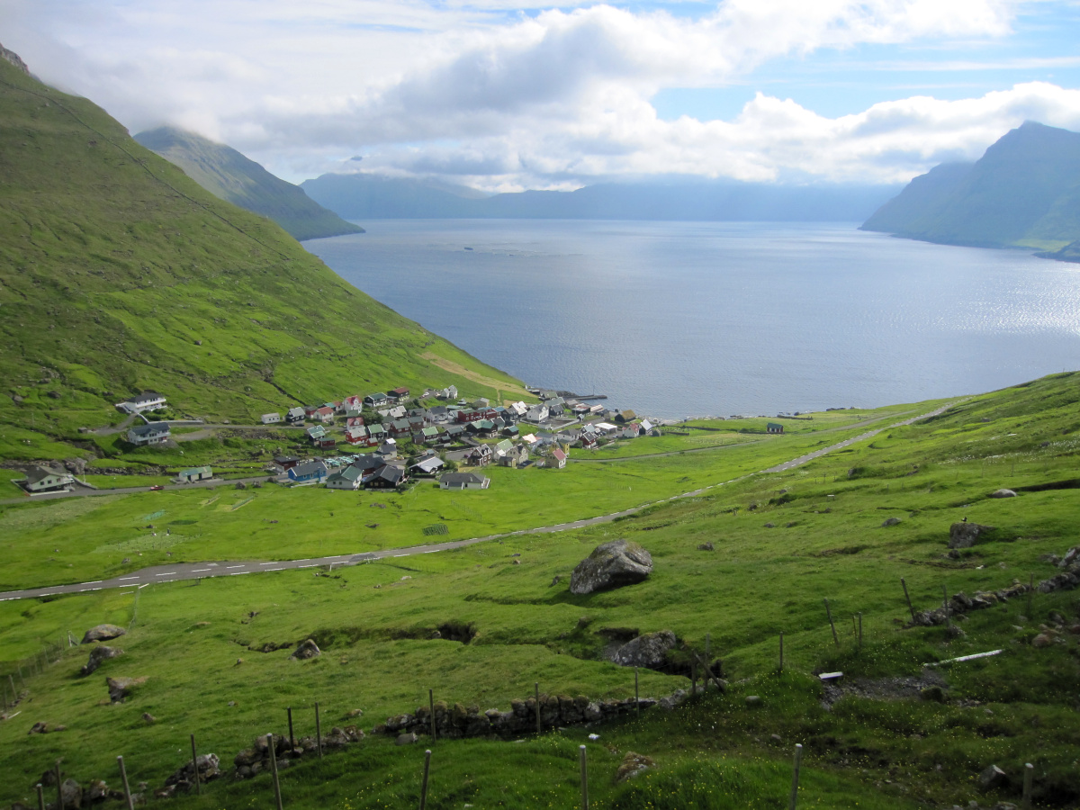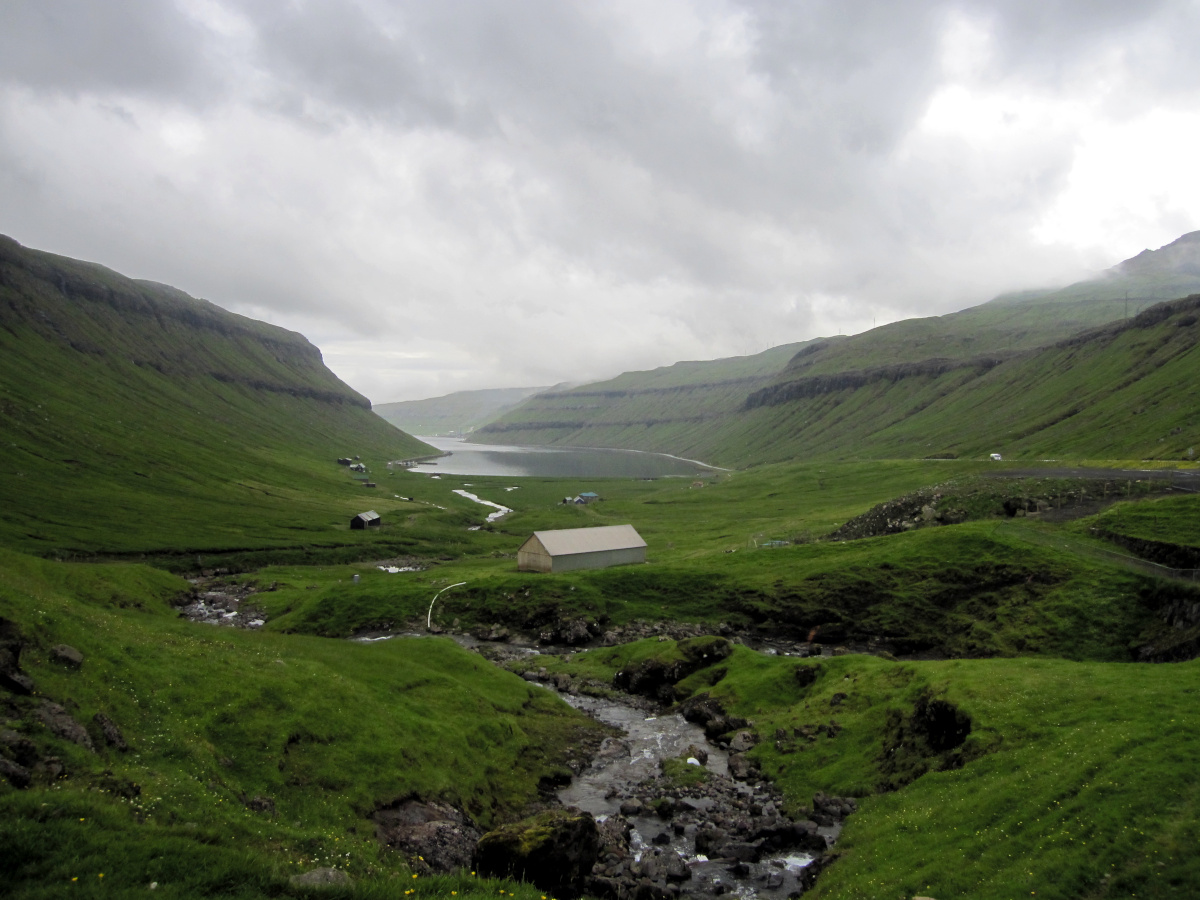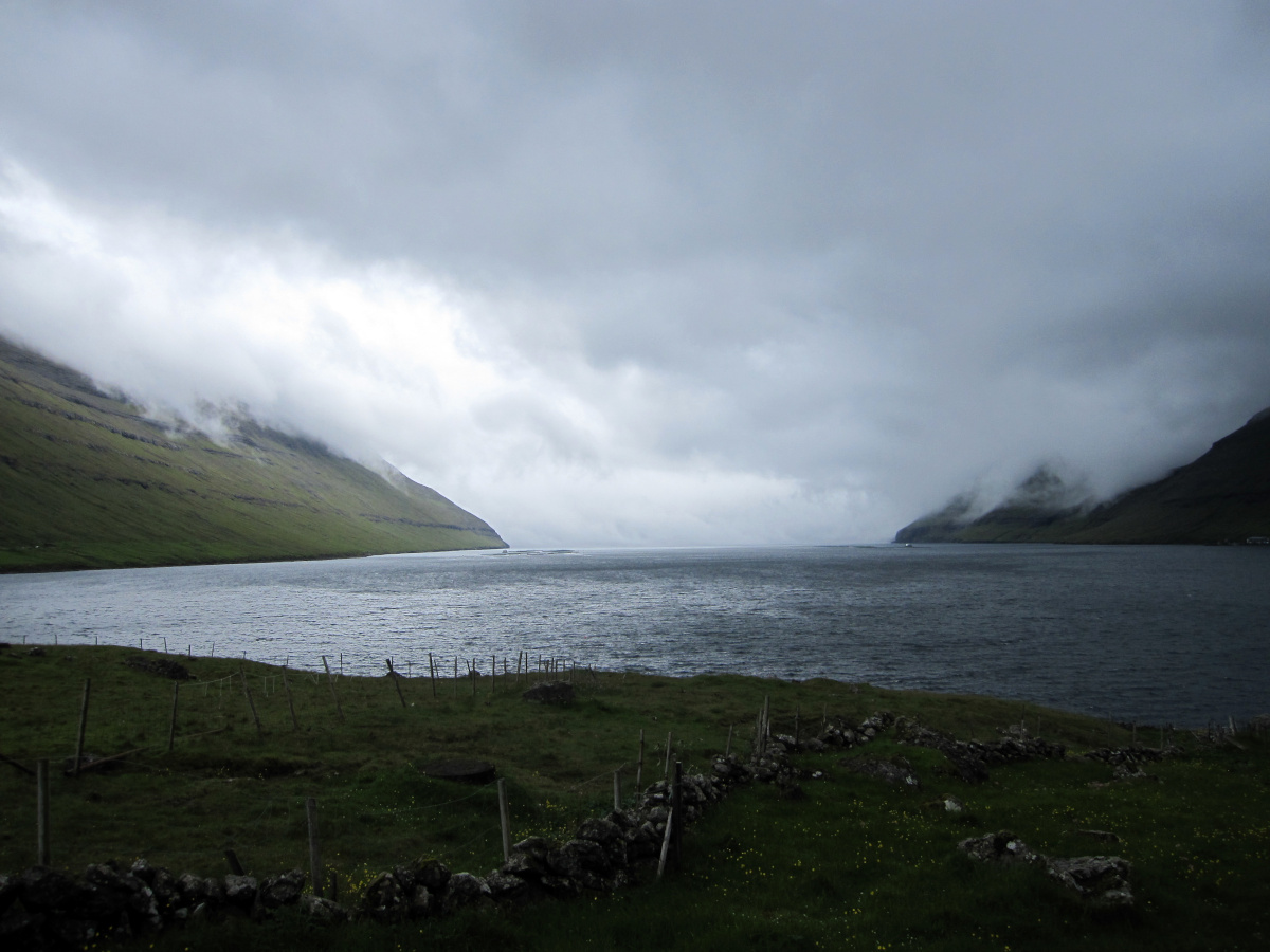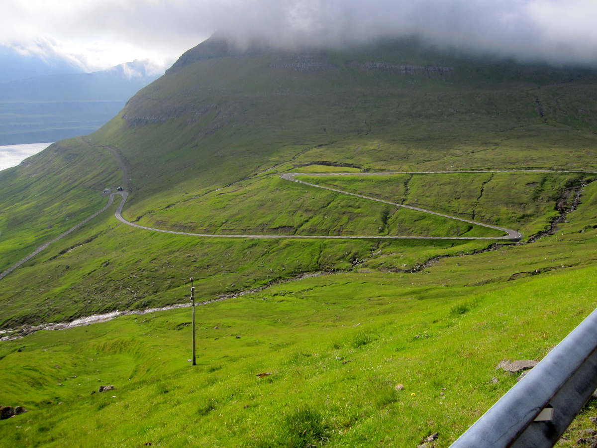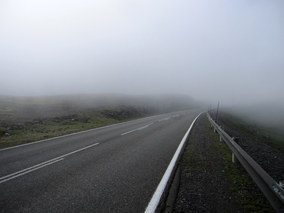 Erst am späten Nachmittag erreiche ich dann Eysturoy. Ich fahre erneut am Sundini entlang nach Norden, diesmal auf der anderen Uferseite. Nach Eiði windet sich die Straße bei heftigem Gegenwind hinauf ins Inselinnere. Zum Abend hin schaffe ich es mit Ach und Krach nach Gjógv, wo es zwar einen Campingplatz gibt, aber leider keinen für Zelte. Nach einer privaten Übernachtung fahre ich bei schlechter werdendem Wetter weiter bis zum Tunnel nach Borðoy, wieder hauptsächlich gegen den Südost-Wind.