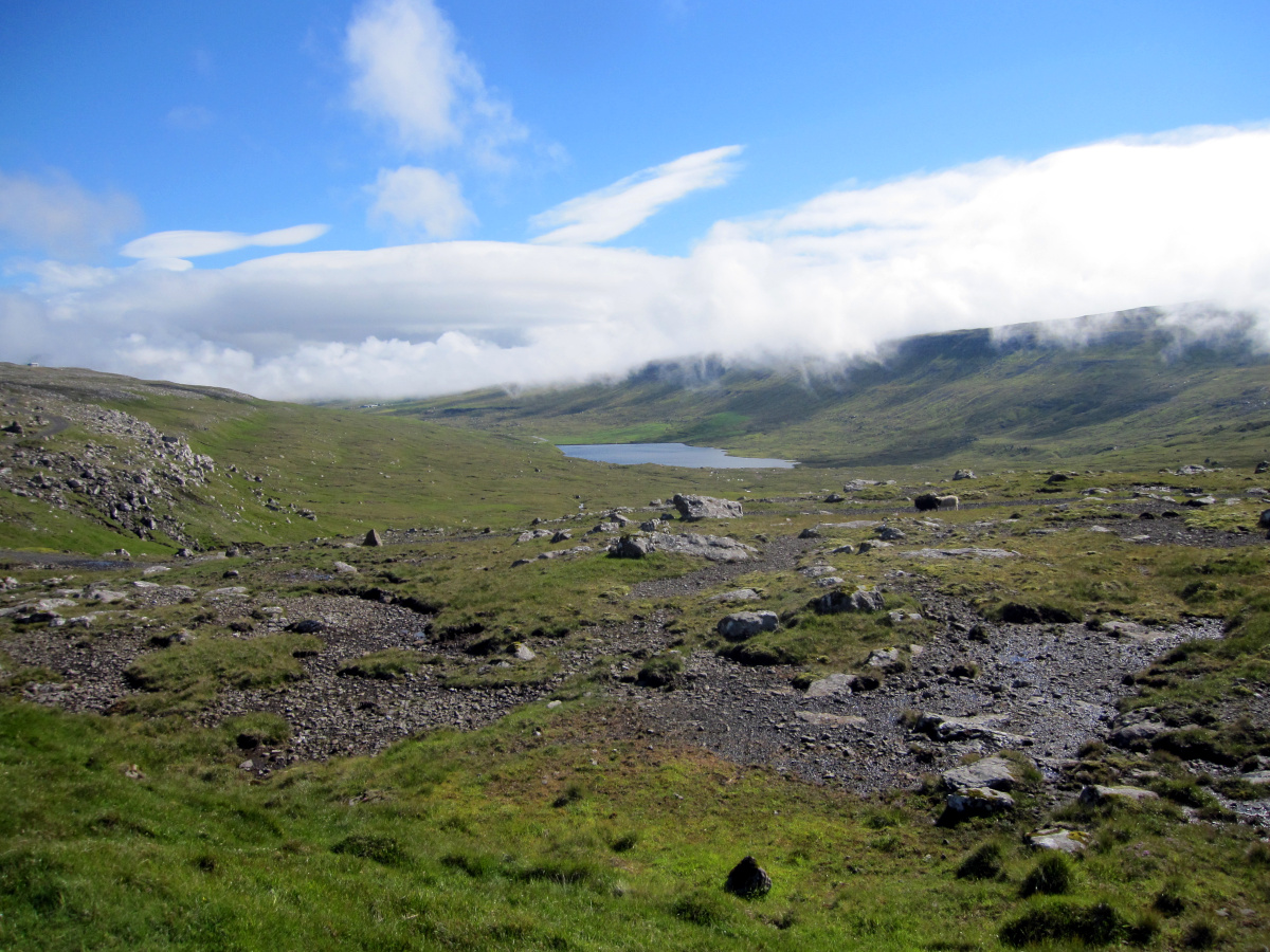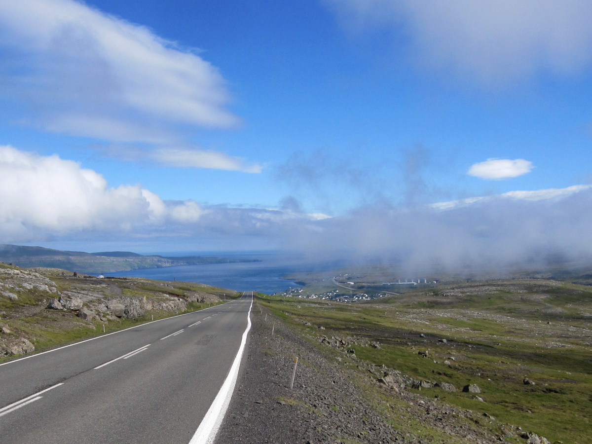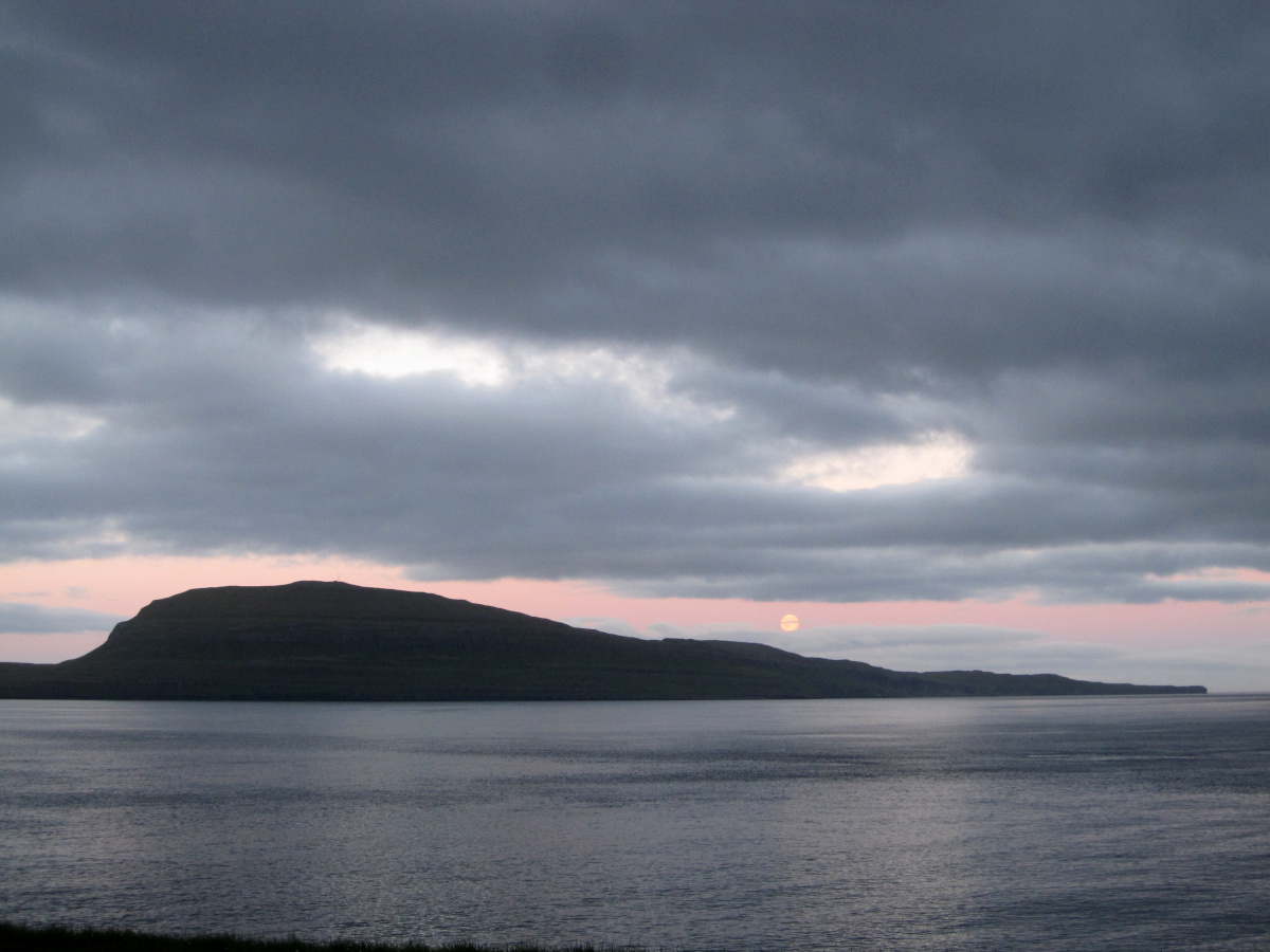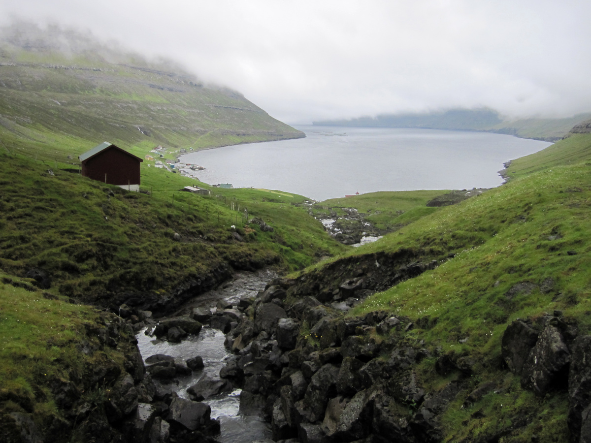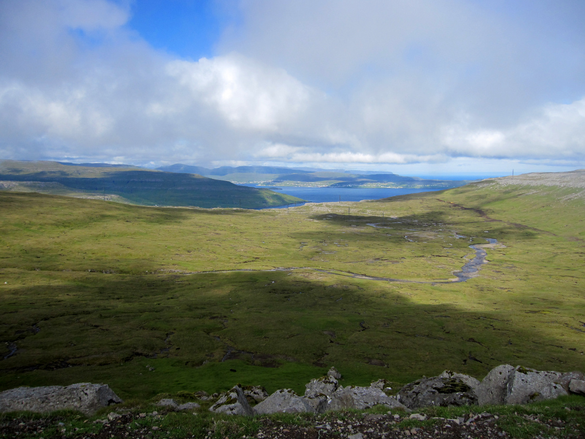 Erst am späten Nachmittag erreiche ich dann Eysturoy. Ich fahre erneut am Sundini entlang nach Norden, diesmal auf der anderen Uferseite. Nach Eiði windet sich die Straße bei heftigem Gegenwind hinauf ins Inselinnere. Zum Abend hin schaffe ich es mit Ach und Krach nach Gjógv, wo es zwar einen Campingplatz gibt, aber leider keinen für Zelte. Nach einer privaten Übernachtung fahre ich bei schlechter werdendem Wetter weiter bis zum Tunnel nach Borðoy, wieder hauptsächlich gegen den Südost-Wind.